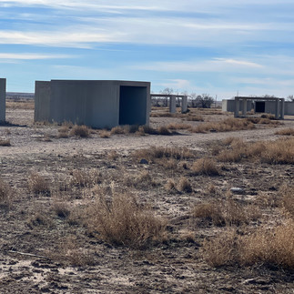 We moved along a path into the Outside exhibit area, or what the Foundation calls on its website, “Open Viewing.” The website adds that there are fifteen works by Donald Judd in this space, and that “the fifteen concrete works by Donald Judd that run along the eastern border of Chinati’s property were the first works installed by Judd. They were cast and assembled on-site over a four-year period, from 1980 to 1984. The works sit along a one-kilometer axis that runs north-south.”(3)