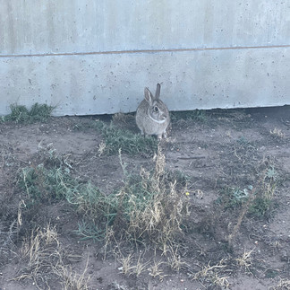 The grandchildren, meanwhile, as one would expect of a four-year old girl and a two-year old boy, were far less impressed by the art, and much more excited by the discovery of a rabbit who had taken up housekeeping under one of the concrete cubicles. And, to give the rabbit his (or her) due, he was a cute wee beast, and seemed to understand that we were no threat to him. If he wasn’t exactly fearless, he did regard us with a certain rabbity insolence.