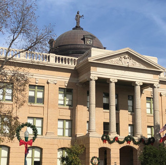 About the Photos: First, a shot of the Casita. This is just after it was completed in September 2024. I’m sitting in it right now. (Note: yes, that’s a Biden-Harris sign in front. I am nothing if not stubborn.) Second, to give you a feel for Georgetown, here’s a shot of the Courthouse, which sort of forms the heart of downtown. And, finally,one of the cooler things that G’town does is host a poppy festival each year. And here is Martha among some of them. This was back in 2021 when she was still recovering from a bit of wrist repair.